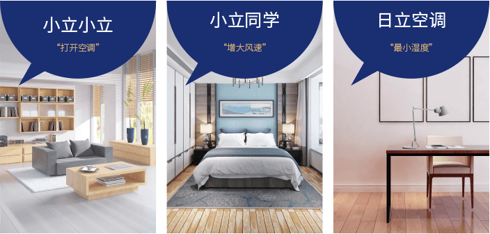 語(yǔ)音控制設(shè)備都有特定的名字,呼叫喚醒完成互動(dòng)。日立語(yǔ)音控制器特別設(shè)計(jì)三個(gè)喚醒詞,不同房間有不同的名字,防止語(yǔ)音的誤操作。